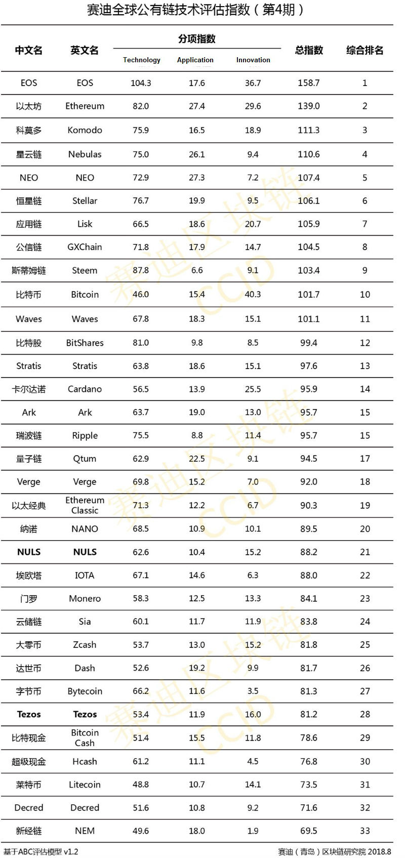 В августовском рейтинге , как и раньше, удерживают свои призовые первое и второе места EOS и Ethereum, а вот следующие в топ-5: Nebulas, NEO и Stellar, спустились на одну позицию вниз, соответственно на 4, 5 и 6 места. И все это благодаря сюрпризу, которым стало 3-е место в рейтинге - Komodo. В списках прошлого месяца, он удостоился всего лишь 9 места. Возможно, китайские специалисты так высоко оценили новую технологию, использующую протокол Delayed Proof of Work (dPoW), который обеспечивает высокую степень анонимности и безопасности транзакций. Сам по себе Komodo достаточно претенциозный проект, имеющий намерения сформировать свою полноценную экосистему. Для этого платформа планирует позволить разработчикам запускать собственные независимые реестры и предлагать оригинальные монеты (ICO).