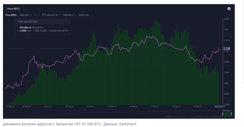 Аналитики Santiment считают, что биткоин-киты воспользовались падением биткоина для того, чтобы нарастить позиции.