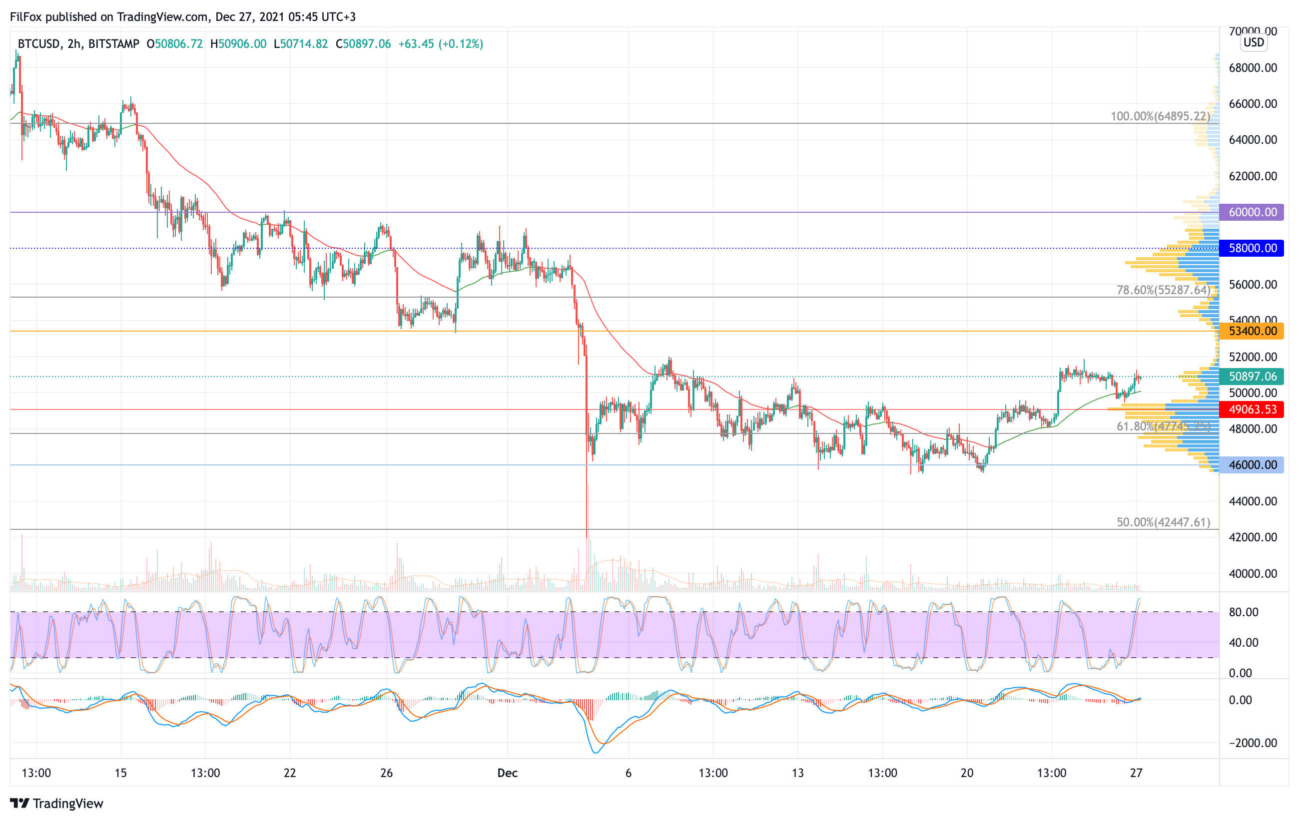 Сегодня быки попытаются вытащить цену Bitcoin из бокового диапазона и протестировать уровень 50000.00 USD.