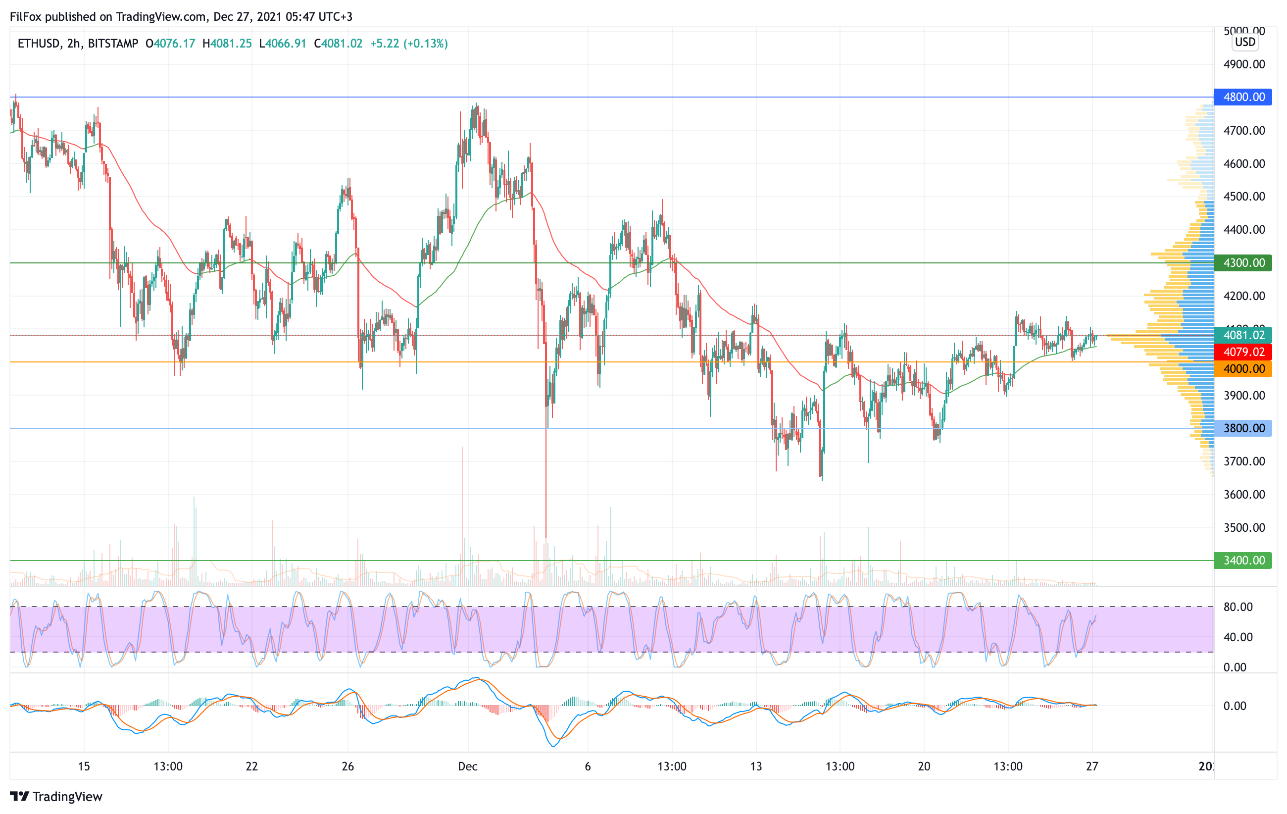 В воскресенье продавцы вернули цену эфира к психологической поддержке 4000.00 USD, которая развернула пару на восстановление.