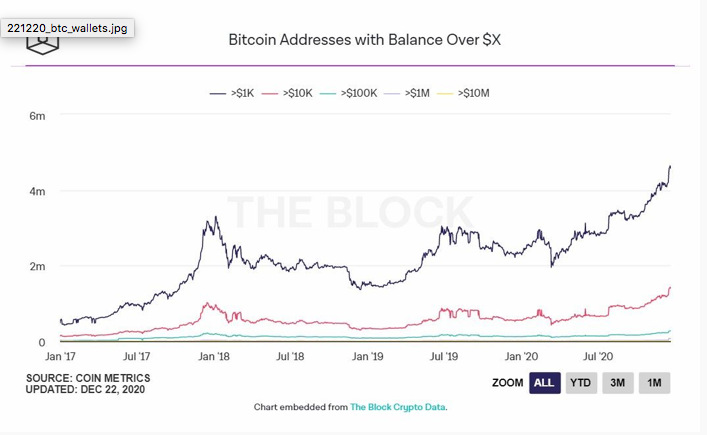 $1 000 BTC на счету - 4.57 млн кошельков.