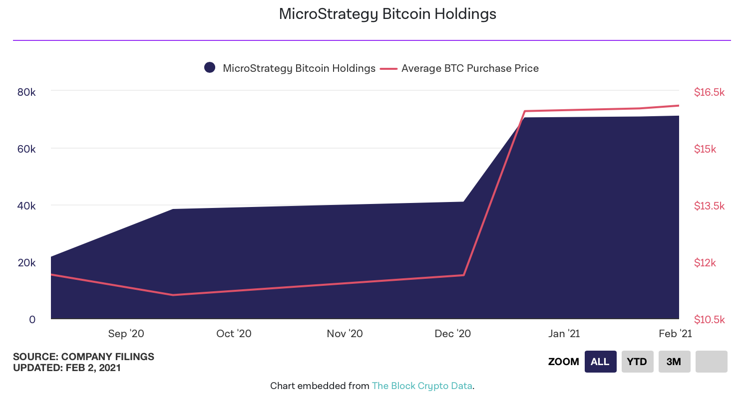 2 февраля публичная компания MicroStrategy объявила о покупке еще 295 биткоинов на сумму $10 миллионов