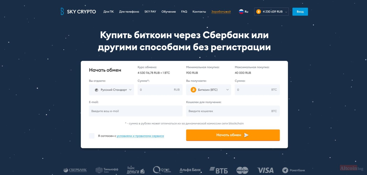 В материале рассказываем об обменном сервисе SKY CRYPTO. А также показываем как совершить моментальный обмен между валютами без комиссии.