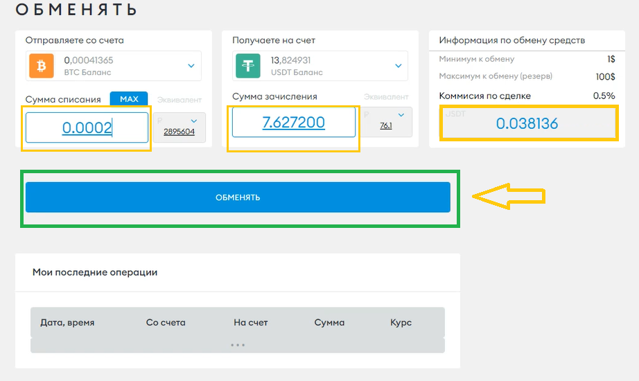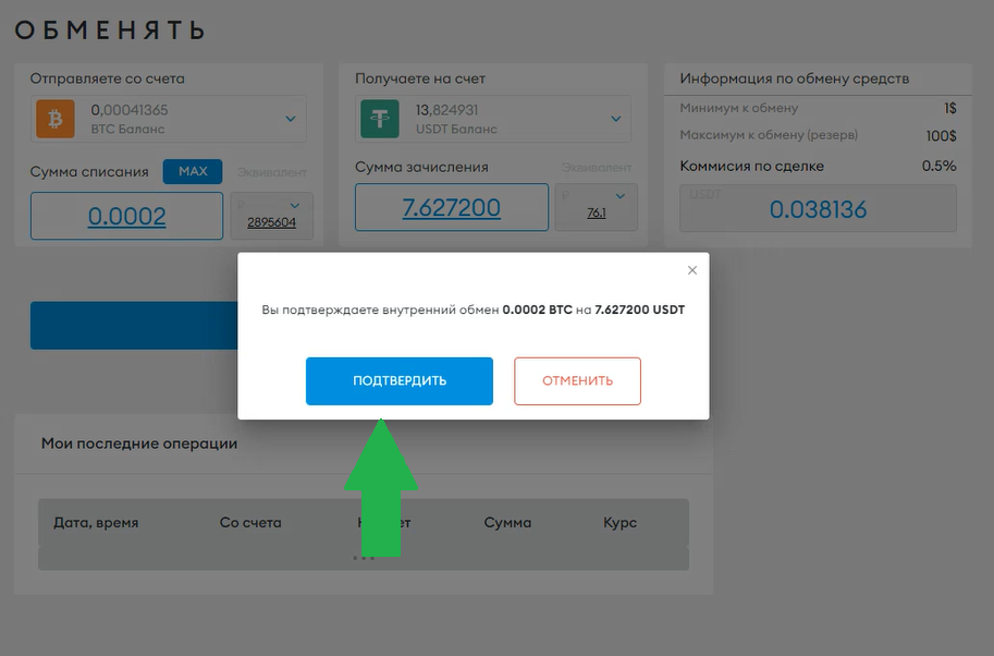 Далее нажимаем обменять и подтверждаем перевод.