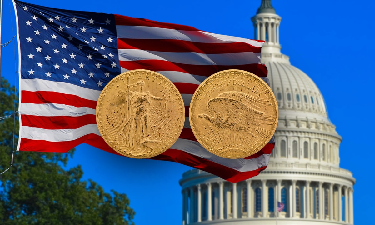 Это золотая монета номиналом монета $20 никогда не была в обращении, так как вскоре после выпуска этих монет президент Франклин Д. Рузвельт отменил в 1933г. золотомонетный стандарт в США. Немногие золотые монеты уцелели в результате проведения «Золотой конфискации» (Gold Confiscation of 1933)*.