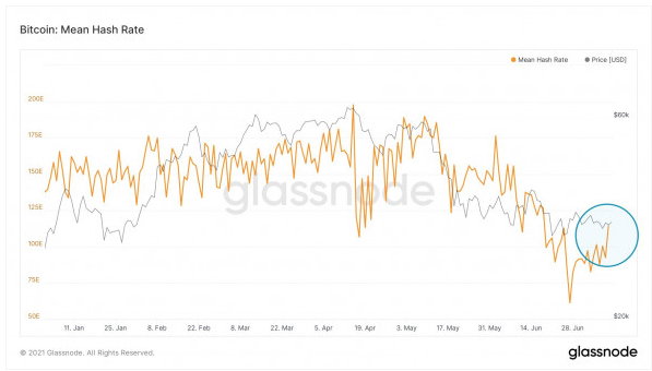 Кроме того, ситуация с хешрейтом биткоина начала медленно стабилизироваться. В июне графики показали рекордное падения и хешрейта и сложности майнинга биткоина. Сейчас объем вычислительной мощности в сети первой криптовалюты начал расти. Часть асиков, которые работали в Китае, уже подключены в новых юрисдикциях.